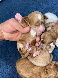 In this situation we have crossed a CavaPoo F1, to a poodle, which makes it an F1B. This way we get the build quality of the long haired Cavalier which are known to have little to no genetic problems.